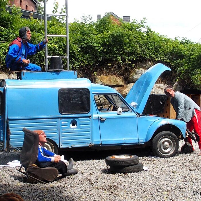 Tre clown in panne con la loro auto affrontano un viaggio grottesco e incerto, sospesi tra attese beckettiane e tempeste interiori. Una favola dell’assurdo, comica e umanissima, che racconta l’arte di restare curiosi anche quando tutto sembra sfuggire. Un’esplorazione clownesca dell’erranza, dello sconosciuto et del destino.